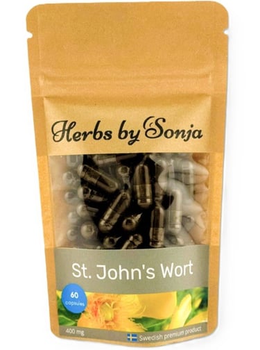 Bevat rhodiola extract (140 mg), Sint Janskruid extract (100 mg), gingko extract (100 mg), griffionia extract (50 mg), saffraan extract (30 mg).